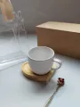 ☕🤍 Xícara de Cerâmica com Pires em Madeira | Kit Presenteável
